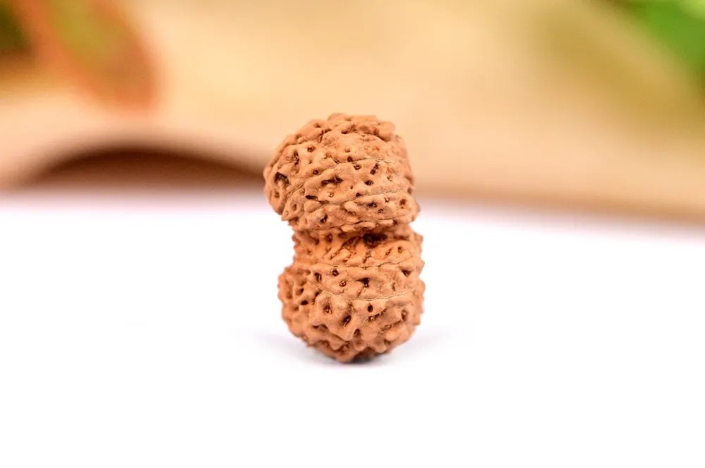 The Gauri Shankar Javanese Rudraksha is the unified form of Shiva and Shakti, represented by two rudraksha beads that are naturally joined. It activates the Hrit Padma chakra and draws peace, harmony, and wealth into the wearer's life. Goddess Mahalaxmi resides within the Hrit Padma chakra, the spiritual heart. The unblocking of this chakra is essential for the functioning of all of the body's chakras. This rudraksha awakens unconditional love and the ability to identify one's partner. The Indonesian Gauri Shankar rudraksha beads can be worn as single beads in bracelets or pendants, and also in kanthas, malas and in combination with other gemstones as per Rudraksha Ratna Science Therapy.